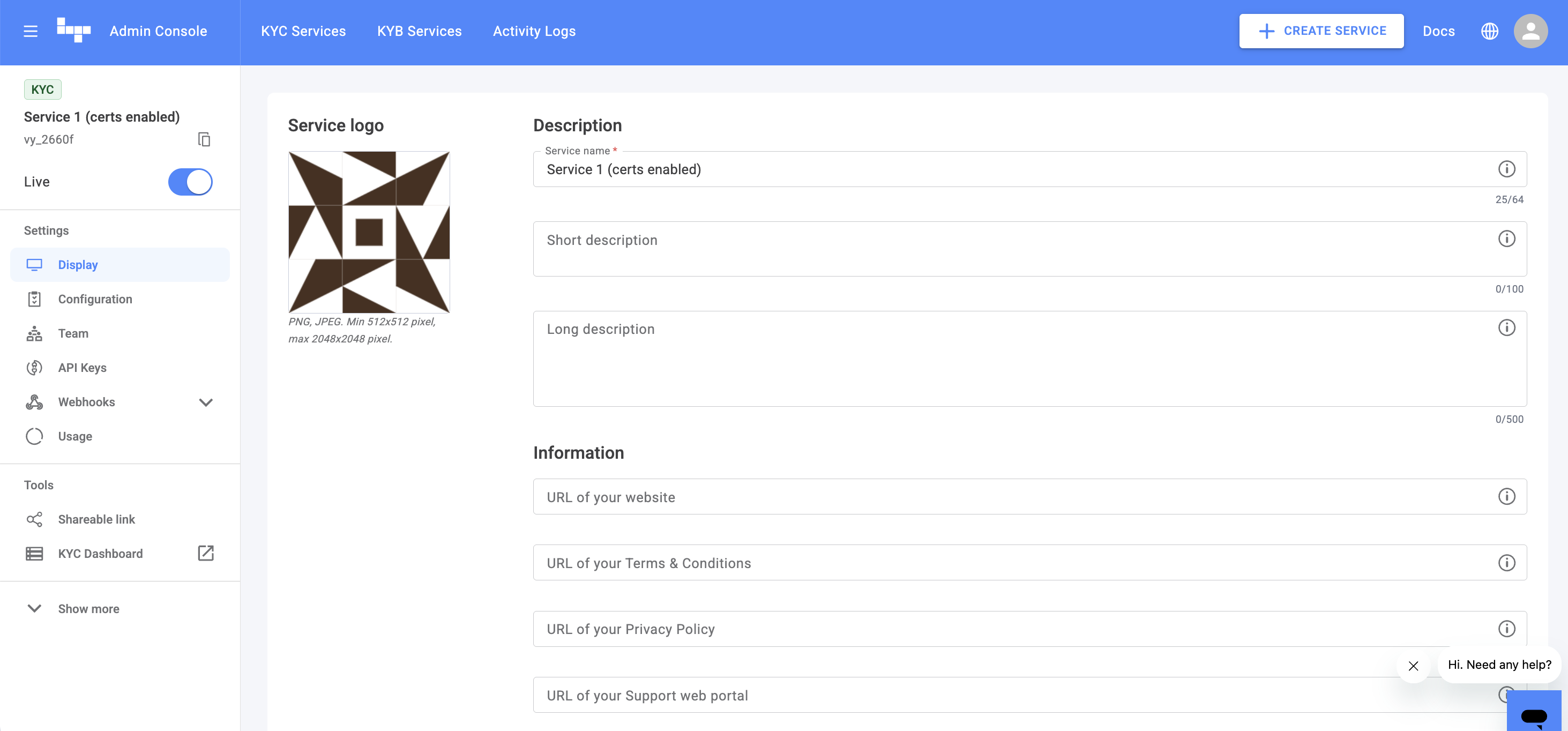 - Logo: Upload a logo to visually represent your service.