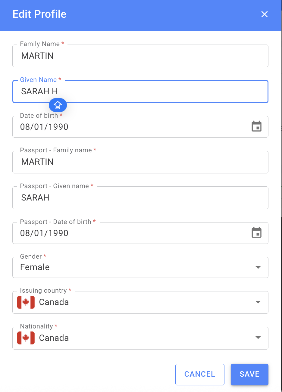 Edit: After reviewing the certificate results and comparing the data, operators with a Manager role can edit the User Information section if any of the following details are incorrect: