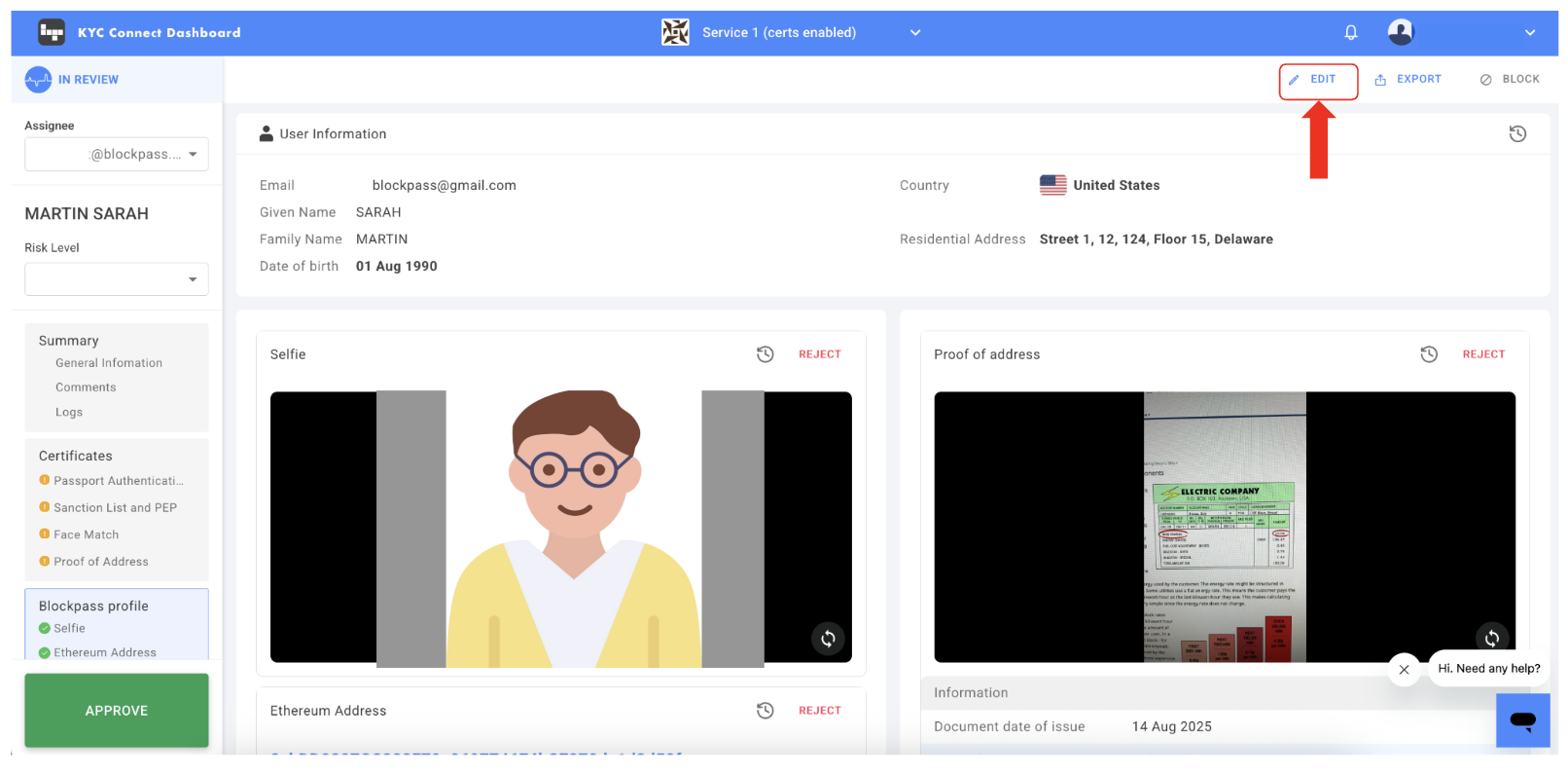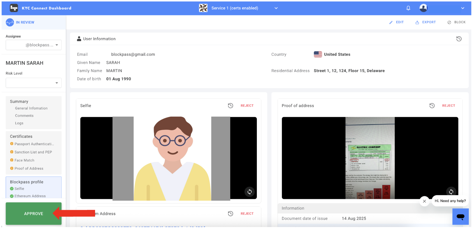 Approve: If everything is valid, click the "APPROVED" button at the bottom-left of the profile overview and submit.