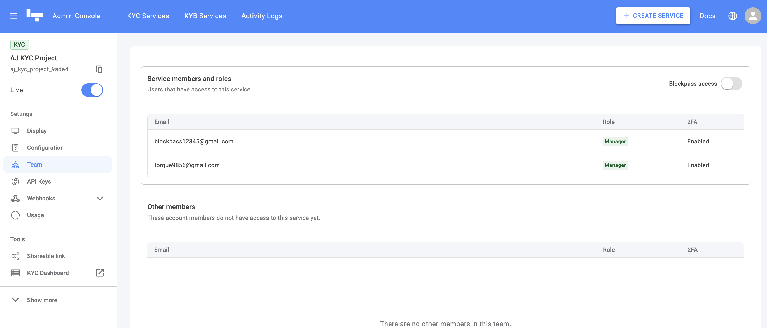 | Member | Has limited access. This role can be assigned to KYC or KYB services as either a Manager or Reviewer, depending on the required level of involvement in the verification process. |