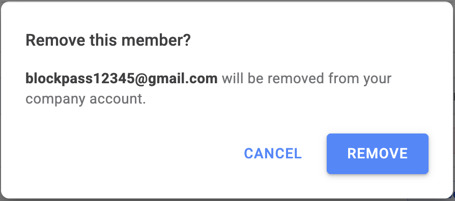 Remove a team member at the company level: Locate the member's email and click the Delete icon > REMOVE.