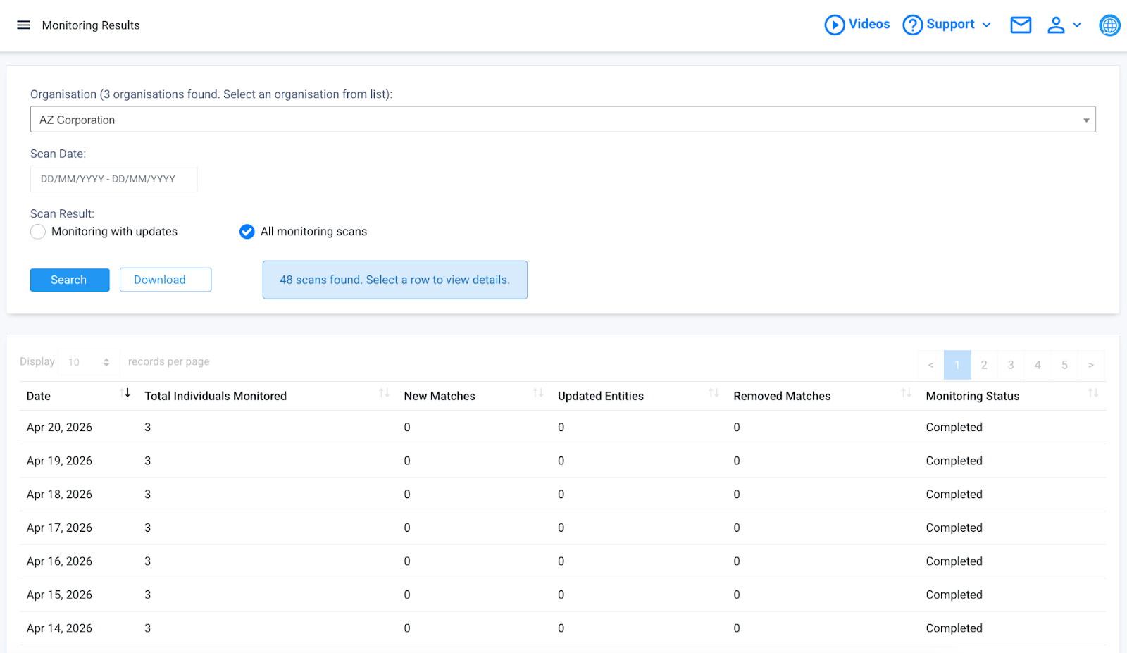 - Data Frequency: The system performs automated checks against Sanctions, PEP, and Adverse Media lists, which are refreshed on a daily basis.