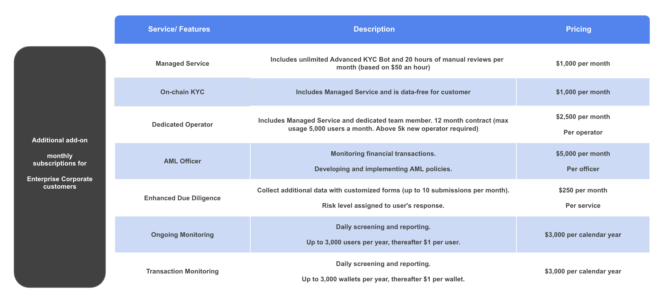 Add-ons for the Corporate Plan
